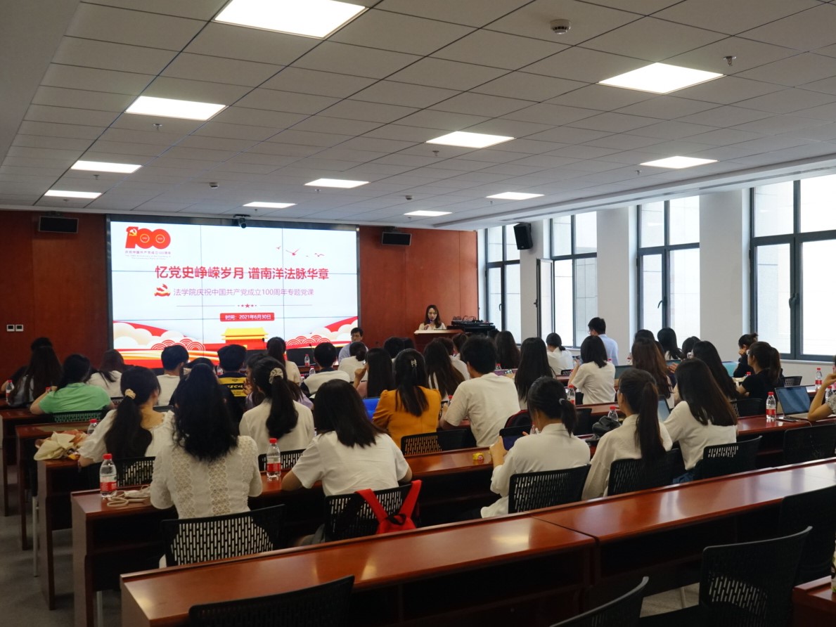 6月30日下午,bat365在线唯一官网登录党总支在创新港涵英楼5-3004举办“忆党史峥嵘岁月,谱南洋法脉华章”专题活动,热烈庆祝中国共产党成立100周年!bat365在线唯一官网登录党总支书记王保民出席并讲授党史学习专题党课,bat365在线唯一官网登录各支部书记、党员代表、入党积极分子参加活动。活动由bat365在线唯一官网登录党总支秘书李晶主持。