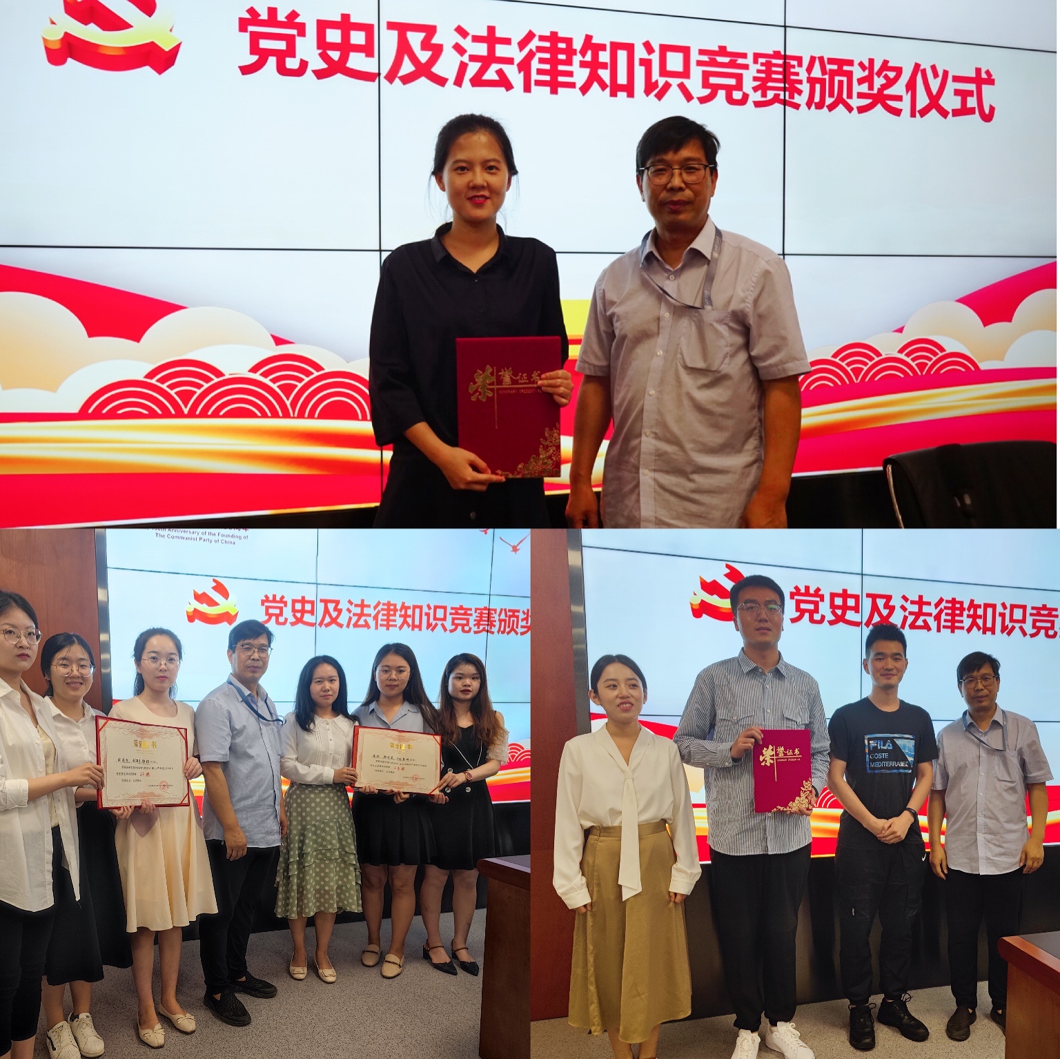 接着,王保民书记为前期在学院举办的党史及法律知识竞赛中获奖的同学颁发荣誉证书。