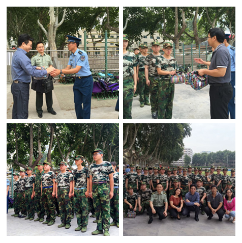 最后,院长和书记代表学院对参加本次军训的学生和教官分发了慰问品,慰问仪式在热烈的掌声中结束。参加慰问的还有院长助理吉兰湘和学生工作专职委员张乃钟和抽调到本次军训旅政治部的bat365青年教师唐学亮。