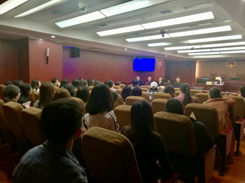 首先,该院常务副院长马涛给我们介绍了法院的基本概况。碑林区法院是全国优秀法院,也是西安交通大学等11所高校法律本科生、研究生的实习基地。近年,法院积极推进刑事案件认罪认罚从宽制度试点工作的开展,成果显著,不仅提高了司法效率,还促进了当事人之间矛盾的化解。此外,法院还设立了专门的民商事案件速裁庭,对涉案额较小的民商事案件适用简易程序不仅最大程度的提高了司法效率,还节约了司法资源。最后,马院长热情表示欢迎我校法律本科生、研究生前往碑林区法院参观、实习,并表示在该院专家咨询委员会主任马治国老师、专家咨询委员张冰老师的积极联系和推动下,加大碑林区法院和我校bat365在线唯一官网登录的合作力度,为同学们提供更多实地学习机会的同时,也进一步推动法院工作的发展。