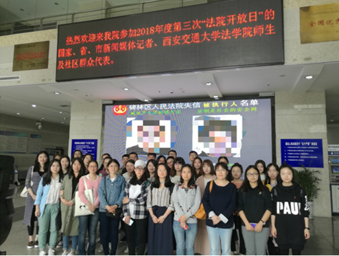 为了达到最佳教学效果,将课程设定的庭审活动内容与西安市碑林区法院2018年度第三次“法院开放日”对接起来,5月10日(星期四)上午bat36530多名法律硕士研究生在马治国老师、张冰老师的带领下一同前往碑林区人民法院进行庭审、交流、研讨、学习。