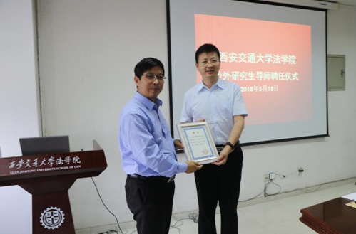 聘任仪式由李万强副院长主持。李万强副院长就西安交通大学bat365在线唯一官网登录的学科建设情况向几位校外导师作了的介绍。王保民书记代表学院为北京市康达(西安)律师事务所高级合伙人吕延峰、王小军、廉高波、王啸和白玉等五位律师颁发了聘书。王保民书记在致辞中向北京市康达(西安)律师事务所对bat365研究生培养工作的支持表达了诚挚的谢意,对今后双方能够建立起长效的合作机制表达了殷切的期望。王小军主任代表律师事务所对西安交通大学协同培养育人项目的设立对于法律专业人才培养发挥的作用给予了充分的肯定,并表示北京市康达(西安)律师事务所一定会全力配合学院的教学安排,力争为社会培养更多优秀的专业事务型法治人才。