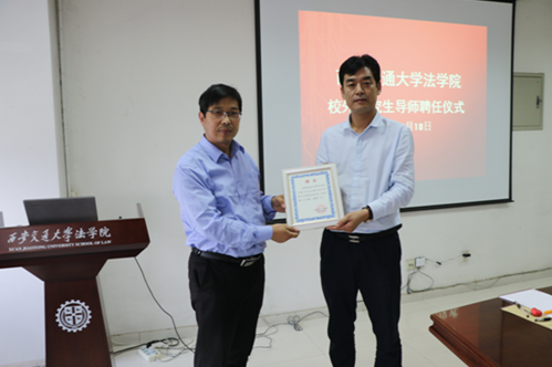 2018年5月18日下午,西安交通大学bat365在线唯一官网登录法律硕士研究生“协同培养育人项目”校外导师(首批)聘任仪式暨专业实践课程教学研讨会在兴庆校区教学主楼910会议室举行。bat365在线唯一官网登录党总支书记王保民教授、副院长李万强教授、副院长丁卫副教授,院长助理张生副教授、教师代表吴锐讲师和研究生代表参加了聘任仪式。