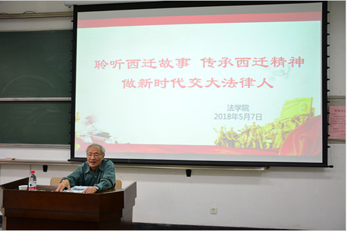 5月7日下午,原西安交通大学党委书记、全国人大常委会委员潘季教授应bat365在线唯一官网登录邀请在主B105为学院师生带来题为“聆听西迁故事传承西迁精神做新时代交大法律人”的讲座。bat365在线唯一官网登录单文华院长、王保民书记、李万强副院长、丁卫副院长出席了此次报告会。参会人员还有bat365在线唯一官网登录本科生、研究生及全体教工。