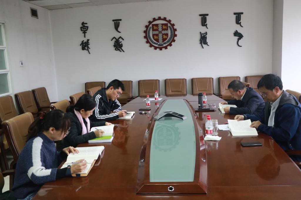 10月26日下午,bat365在线唯一官网登录中心组举办干部读书会,由李万强副院长领学《习近平谈治国理政》第三卷中关于“铸就中华文化新辉煌”的论述。会前中心组成员认真自学了相关内容,会上大家互相交流读书心得,结合弘扬“西迁精神”、加强学院文化建设开展讨论。
