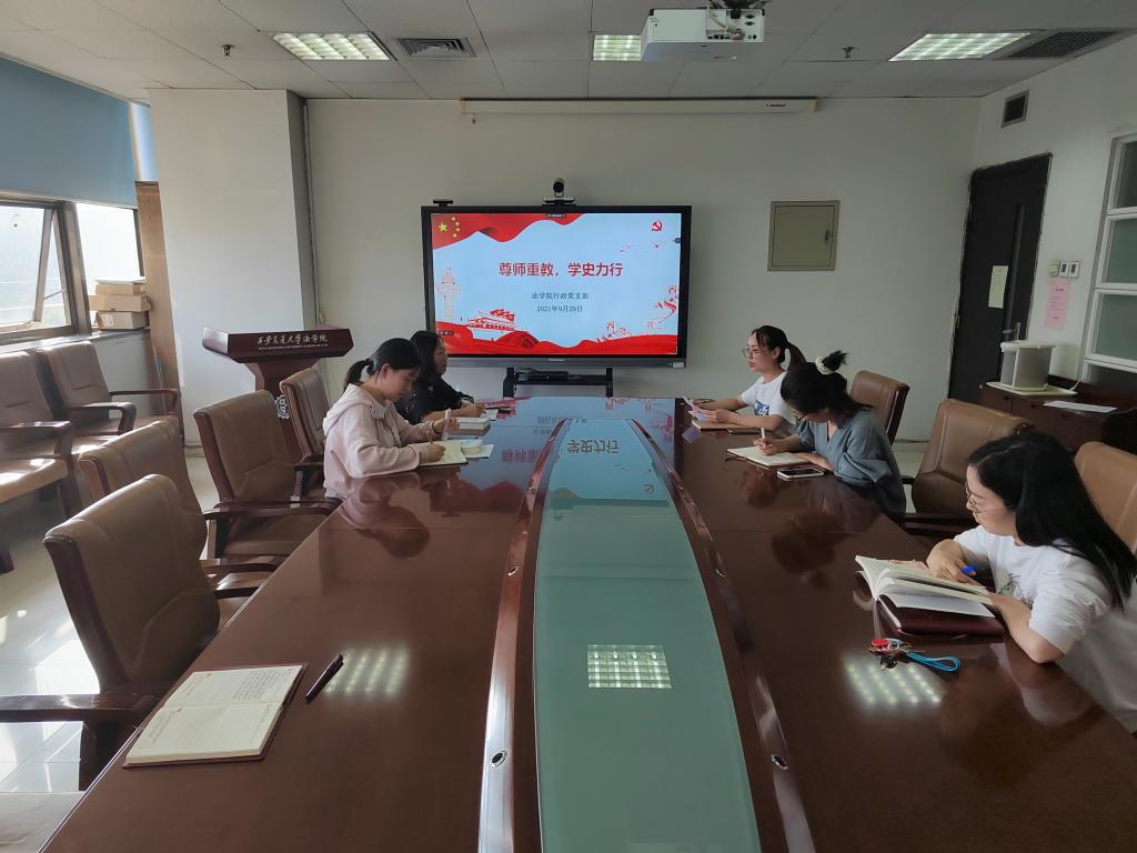 9月29日下午,bat365在线唯一官网登录行政党支部以“尊师重教,学史力行”为主题召开专题组织生活会,学习习近平总书记给全国高校黄大年式教师团队代表的回信精神,贯彻落实习近平新时代教育思想。结合党史学习教育和“我为师生办实事”等工作,研讨加强师德师风建设举措。会议由行政党支部书记李晶主持。