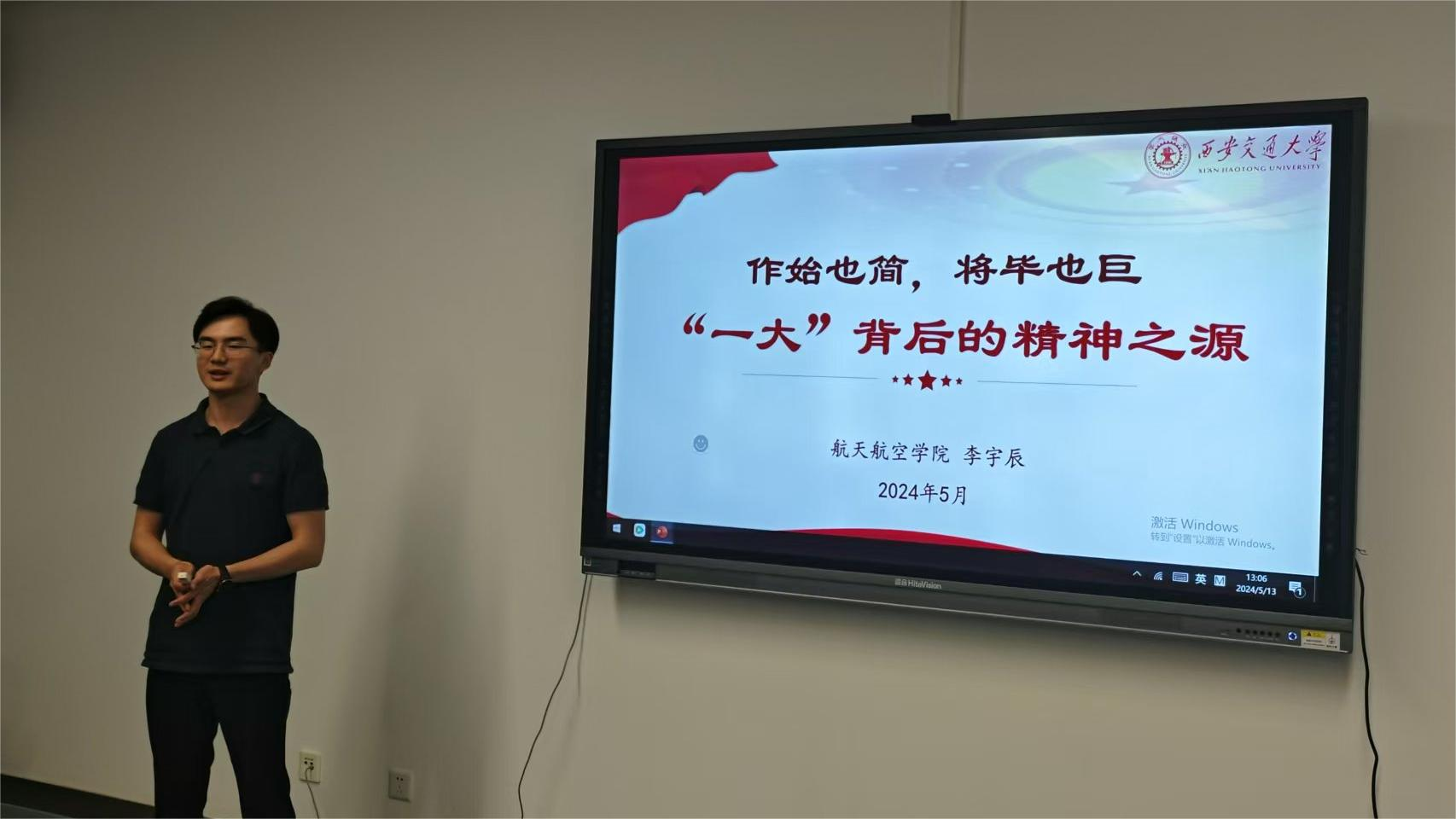 5月13日,航天学院辅导员李宇辰老师,以《作始也简,将毕也巨:“一大”背后的精神之源》为题,向各位发展对象详细介绍了“一大”背后的故事,并以此为切点激励同学们“不忘初心、牢记使命”,在未来的工作岗位中践行“西迁精神”。