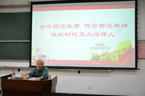 5月7日下午,原西安交通大学党委书记、全国人大常委会委员潘季教授应bat365在线唯一官网登录邀请在主B105为学院师生带来题为“聆听西迁故事传承西迁精神做新时代交大法律人”的讲座。bat365在线唯一官网登录单文华院长、王保民书记、李万强副院长、丁卫副院长出席了此次报告会。参会人员还有bat365在线唯一官网登录本科生、研究生及全体教工。