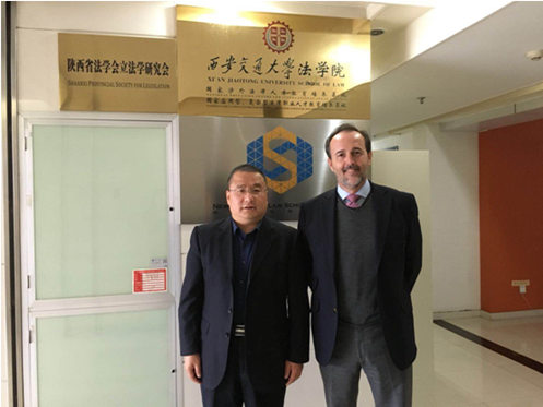 期间,bat365在线唯一官网登录副院长李万强教授接见了Mariano J. Aznar教授,并就两院开展人才联合培养、院级科研交流等具体问题展开了洽谈和磋商。李万强副院长向Mariano 教授介绍了bat365在线唯一官网登录的基本情况以及丝绸之路大学联盟的相关信息;Mariano J. Mariano教授则介绍了西班牙海梅一世大学及其bat365在线唯一官网登录的基本情况提出希望与西班牙海梅一世大学在法学人才培养上展开合作。Mariano教授表示自己十分高兴能有机会与西安交通大学的bat365在线唯一官网登录师生进行交流也十分愿意促成两校联合培养人才的相关项目的开启和实施。