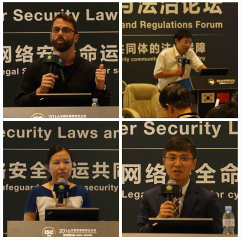 8月16日-18日,第四届中国互联网安全大会(ISC2016)在北京国家会议中心隆重召开。本届大会聚集了全球70多家相关机构和众多专家学者、企业代表,就世界网络安全形势、网络空间战略、安全攻防实战等主题进行了深入探讨。大会以“协同联动:共建安全命运共同体”为主题,设置了多个主题论坛。其中,网络安全与法治论坛备受瞩目,论坛邀请了国家互联网应急中心运行部副主任、正高级工程师严寒冰,法制日报社副社长周秉键,美国前国防部首席网络政策官、美国伯克利大学法学教授Jonathan Reiber,北京邮电大学互联网治理与法律研究中心常务副主任、副教授谢永江,中国信息通信研究院互联网法律研究中心主任李海英,韩国最高检大网络检查侦查官、网络安全法专家Chu Pill Hwan,西安交通大学信息安全法律研究中心主任、教授、陕西法学会信息安全法学研究会会长、中国网络安全协会副理事长马民虎,公安部第三研究所网络安全法律研究中心主任、副研究员黄道丽,西安交通大学信息安全法律研究中心博士马宁等国内外十余位顶级网络安全法领域专家就“网络安全命运共同体的法律保障”这一主题进行了广泛的研讨和交流。