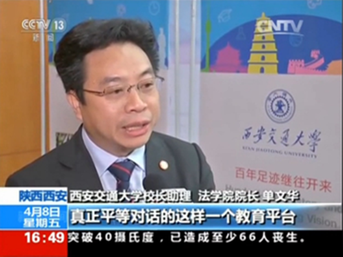4月8日下午,中央电视台新闻频道(CCTV-13)新闻直播间栏目聚焦西安交大,推出组合报道,隆重介绍了西安交大创建“丝绸之路大学联盟”和中国西部科技创新港等重大举措,还着重关注了西安交大丝绸之路国际法与比较法研究所与“丝绸之路bat365在线唯一官网登录联盟”。