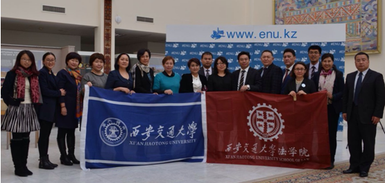 11月20日上午,代表团访问了位于哈萨克斯坦首都阿斯塔纳的“哈国最佳学府”欧亚大学。欧亚大学副校长Yerlan Sydykov 教授以及bat365在线唯一官网登录院长Amandykova K Saule 教授等会见了代表团一行。双方就联合bat365在线唯一官网登录创建、特色高端人才培养项目开展方面进行了深入交流,达成了良好共识。Yerlan Sydykov 副校长表示,双方在法学领域的合作有着良好的基础,现就职于我校bat365在线唯一官网登录的Ushunova Sofiya 教授就曾在哈国知名大学长期任教并担任院长,期待双方在法学领域以及丝绸之路经济带研究方面的合作不断深入。我校bat365在线唯一官网登录院长单文华教授则表示,该校博物馆珍藏的大唐开元年间的“故阙特勤之碑”中所描述的“天人相合,寰宇大同”的理念正是丝绸之路所倡导的“互学互鉴、开放包容”理念的精彩注解。双方表示进一步落实合作细节,为两校创建联合bat365在线唯一官网登录奠定坚实基础。随后,双方还进行了“西安交大-欧亚大学丝绸之路图书馆”图书捐赠仪式。
