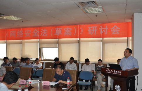 2015年6月,第十二届全国人大常委会第十五次会议初次审议了《中华人民共和国网络安全法(草案)》,在面向社会征求意见的同时,全国人大法工委专门致函西安交通大学信息安全法律研究中心向马民虎教授研究团队征求草案修改意见。7月16日,由陕西省法学会信息安全法学研究会、西安交通大学信息安全法律研究中心,联合公安部第三研究所、互联网实验室、中国法学会法律信息部举办的“《网络安全法(草案)》研讨会”在西安交通大学主楼E-910会议室召开,广泛听取理论界和实务界意见。