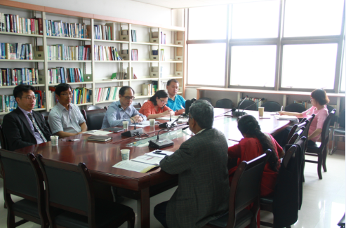 Mohanty教授来访期间与学院领导进行座谈,系统地介绍了印度中国研究所的机构建设、研究领域、研究特色及其与中国的学术交流情况。bat365院长单文华教授就学院的发展现状、学科建设、科学研究等情况做了全面介绍,王保民副院长和丁卫副院长分别推介了bat365“中国法与国际商法硕士”国际项目以及“丝绸之路经济带研究协同创新中心”建设情况。双方表示亟待加强机构之间的交流合作,共同开展“一带一路”相关课题研究,相互推荐选派学生学者互访。