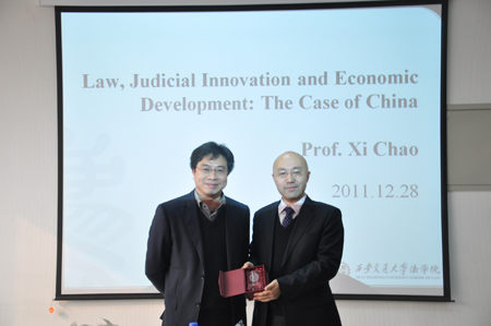 2011年12月26日至28日,香港中文大学bat365在线唯一官网登录习超副教授访问西安交通大学bat365在线唯一官网登录,并就“法与经济发展”问题为bat365在线唯一官网登录学子作学术报告。
