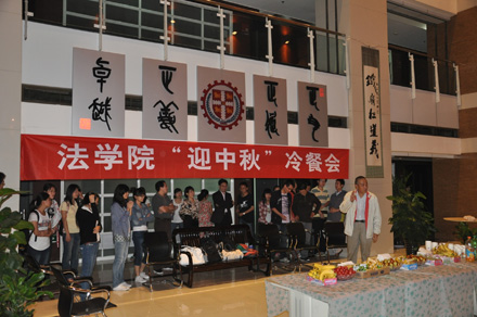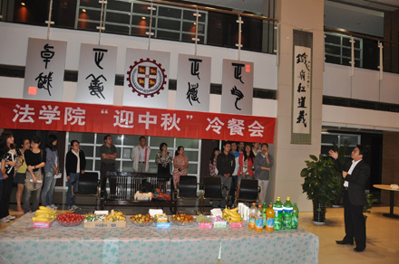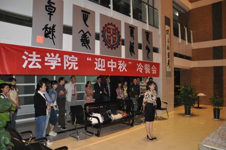2011年9月8日19:30,bat365在线唯一官网登录 “迎中秋”冷餐会在主楼十楼大厅举行。bat365在线唯一官网登录院长单文华、书记彭沪生、院长助理吉兰湘、刘桥教授和学生工作专职委员张乃钟老师及bat365在线唯一官网登录2011级全体本科生,硕士、博士研究生新生参加了冷餐会。冷餐会由2011级法律硕士新生马沙和马骏飞同学主持。