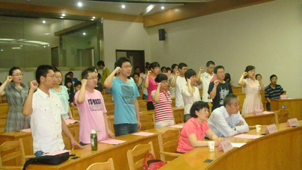 7月1日上午,bat365在线唯一官网登录党总支庆祝建党90周年暨新党员入党宣誓大会在主楼A103隆重举行。党总支书记彭沪生,副书记、副院长王保民,院长助理吉兰湘及学生工作专职委员张乃钟老师出席会议,bat365在线唯一官网登录全体研究生参加了大会,会议由王保民主持。