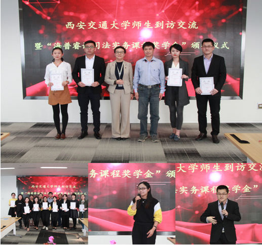 10月17日下午,西安交大bat365在线唯一官网登录马治国教授带领三十四名法学与法律硕士研究生前往海普睿诚律师事务所学习交流,并与律师事务所业务部门主任、合伙人、行政总监及客户主管就实务经验、职业规划等问题进行了深入座谈交流,并为上一届该课程成绩优秀的学生颁发了“海普睿诚司法实务课程奖学金”。