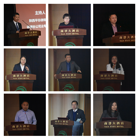 随后,大会进入了“群英会”环节。本环节由陕西标新律师事务所公司专业委员会副秘书长张晗,陕西永嘉信律师事务所合伙人、陕西省律协金融证券专委会委员张璠,陕西平非律师事务所副主任、陕西省律协公司法专业委员会副主任张权,陕西云德律师事务所公司法律顾问事务部首席律师、陕西省律协公司法专业委员会副秘书长杨彩虹依次主持,由张璠、岳玲利、田少荣、王玉苹、勾晓强、任婧、齐精智、刘醒、任永平、崔树森等十名律师对大西安建设中企业创新法律问题进行了深入的探讨,其所涉及的议题丰富,各位发言人见解独到,听众反馈积极,会议气氛热烈,也为今后的学术研究和司法实务开辟了新的视野。最后延安大学政bat365在线唯一官网登录副院长刘向林,陕西省企业经济法治研究会副会长、西安交通大学法学副教授张冰,陕西德伦律所主任梁志新,陕西德伦律师事务所律师、西安市律协公司法专业委员会委员韩小春对十名律师的报告进行了精彩纷呈的点评。