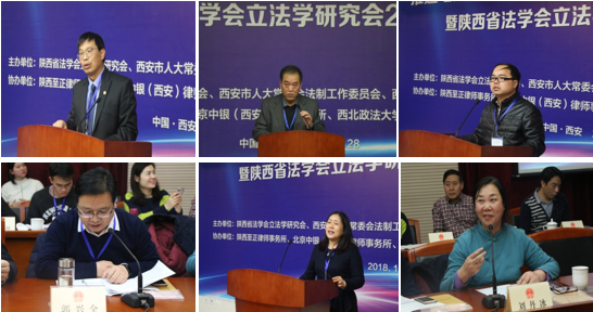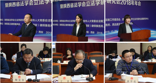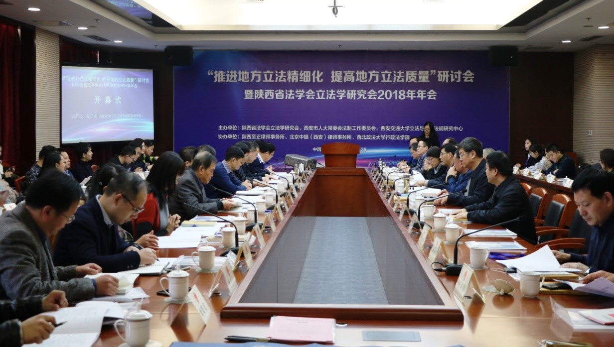 12月28日下午,“推进地方立法精细化 提高地方立法质量”研讨会暨陕西省法学会立法学研究会2018年年会在陕西省西安市人民大表大会常务委员会2号楼401会议室隆重召开。本次会议由陕西省法学会立法学研究会、西安市人大常委会法制工作委员会、西安交通大学立法与党内法规研究中心主办,陕西至正律师事务所、北京中银(西安)律师事务所、西北政法大学立法研究中心、西北政法大学行政bat365在线唯一官网登录协办。来自西安交通大学、西北政法大学、西北大学、陕西师范大学、西北工业大学、中共陕西省委党校、延安大学、中南财经政法大学、陕西省社会科学院等教学科研单位和来自陕西省委政法委、陕西省人大常委会、西安市人大常委会以及宝鸡、商洛、铜川、榆林、韩城等陕西省其它地市人大常委会、西安市人民检察院、西安市中级人民法院、陕西至正律师事务所、北京中银西安律师事务所等法律实务部门的80余位代表齐聚一堂,围绕“推进地方立法精细化 提高地方立法质量”的主题展开了深入探讨。