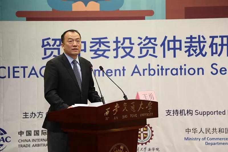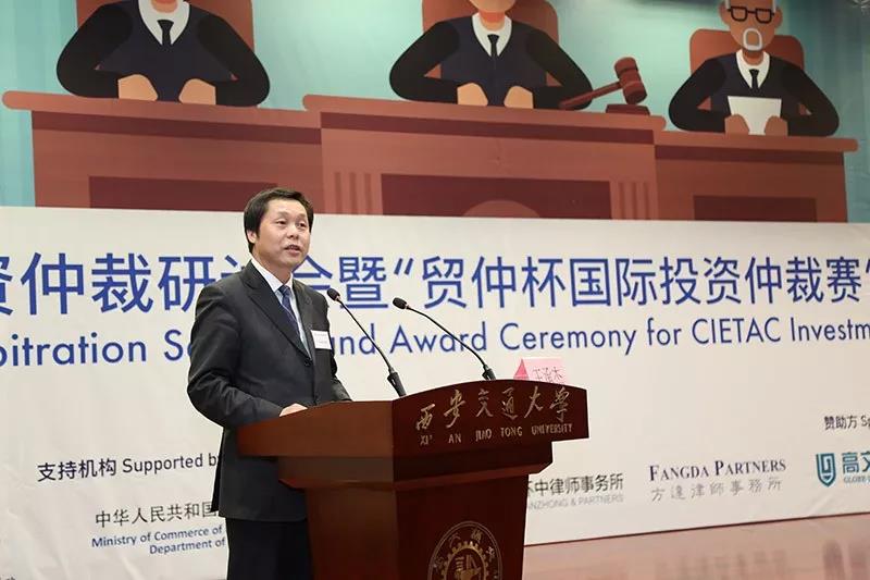 投资仲裁赛后,西安交大bat365在线唯一官网登录与贸仲委共同举办了贸仲委投资仲裁研讨会。商务部条法司为本次投资仲裁赛和研讨会的支持机构。西安市人民政府副市长王勇、贸仲委副主任兼秘书长王承杰、商务部条法司投资处副处长王优酉、西安交大bat365在线唯一官网登录院长单文华、西安贸促会会长龙晓华出席会议。研讨会上,来自国内外的投资仲裁领域专家、学者和律师对投资仲裁的程序性争点进行评述,结合国际投资仲裁的著名案例分享实务经验,介绍了包括对仲裁请求的先期驳回和第三方资助在内的热点话题。