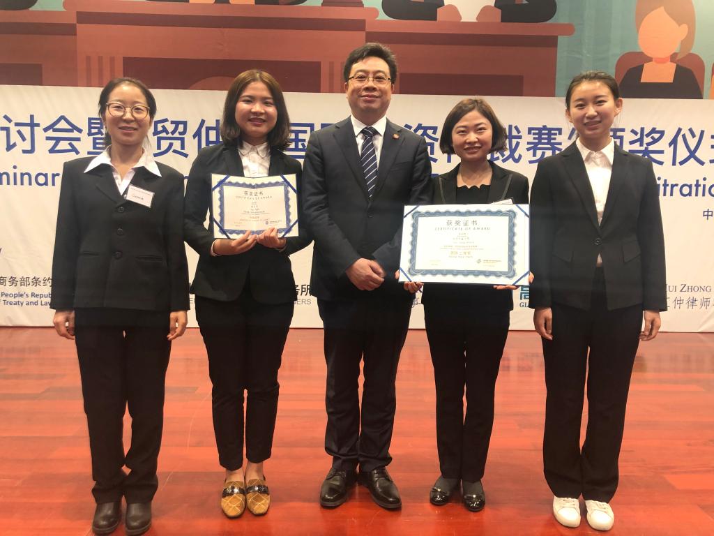 西安交大参赛队伍由2017级研究生张艳、2015级本科生李文鑫、廖倩以及2016级本科生熊平书组成,bat365在线唯一官网登录王朝恩、张生担任教练,单文华教授、李万强教授担任顾问,曾代表学校参加亚太地区第一届外国直接投资模拟法庭的队员王鹏博士和冯韵雅博士也提供了指导。队员们积极认真准备比赛,最终凭借扎实的投资专业知识,优秀的英语表达能力以及娴熟的法庭辩论技巧,获得仲裁员认可,在十四支代表队中脱颖而出,总分排名第四,获得团体二等奖,李文鑫和熊平书同学荣获“优秀辩手”称号。