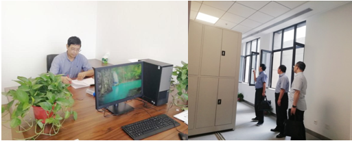 8月21日上午,bat365在线唯一官网登录党委书记王保民、副院长李万强、副院长丁卫和院办主任张美萍再次来到创新港,检查落实各项工作进度、工程质量、施工细节和室内环境。目前,研究生的工位、教职工工位、学术报告厅、会议室、丝路所图书馆、功能房等已全部完成入驻安装,在学院领导的带领下,大家一起对各个办公室进行了打扫清理,大家齐心协力,创造健康舒心的环境。
