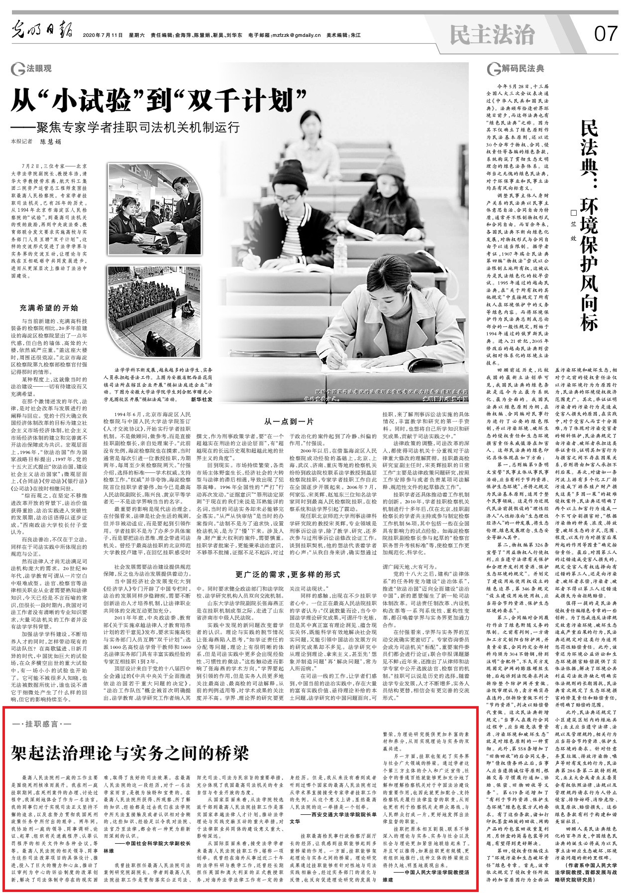 【编者按】日前,《光明日报》发表文章,回顾总结我国专家学者挂职国家司法机关的26年历程,揭示其未来发展方向。同期,该报还选取了三名代表性挂职专家学者,发表了其挂职感言,其中包括bat365院长单文华教授在最高人民法院的挂职感言。