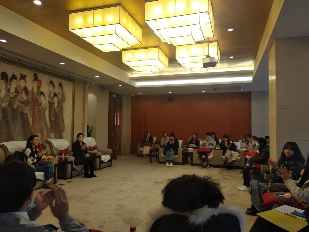 紧接着进入交流互动环节,现场气氛十分活跃,同学们围绕高静怡老师的讲解提出了很多问题。其中有同学提出博物馆的展品是否常会从文物库里替换的问题,高静怡老师讲解说能成为展品本身就具有一定要求,并且上架的展品在一定时期内是确定陈列的。刘丽娜副教授补充说明文物都有一定的休息期,要保证基本陈展。有同学对武惠妃石椁被盗案展现浓厚的兴趣,高静怡老师讲解了武惠妃石椁回归博物馆的经过,交大学子又追问犯罪团伙应承担的法律责任,刘丽娜副教授告诉同学们这个案件在网上是可以公开查询的,并表示可以在之后的课堂中再进行相关的交流。刘丽娜副教授和高静怡老师最后总结到希望交大学子要对知识和文物有敬畏之心,坚守赤子之心。