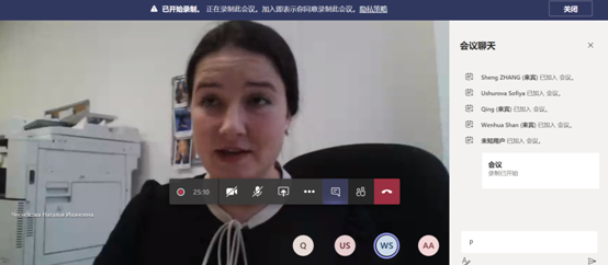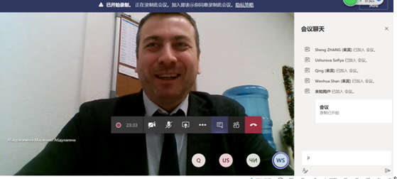 1月13日下午,“新丝路bat365在线唯一官网登录联盟”院校俄罗斯人民友谊大学bat365在线唯一官网登录与西安交通大学bat365在线唯一官网登录举办了线上会议,bat365在线唯一官网登录院长单文华教授,外籍教授Ushurova Sofiya,院长助理张生副教授和外事秘书郭庆参会。俄方院长Sergey Zinkovskiy,国际交流副院长Natalia Chesnokova,外事秘书 Marzhana Abduragimova等人参加会议。