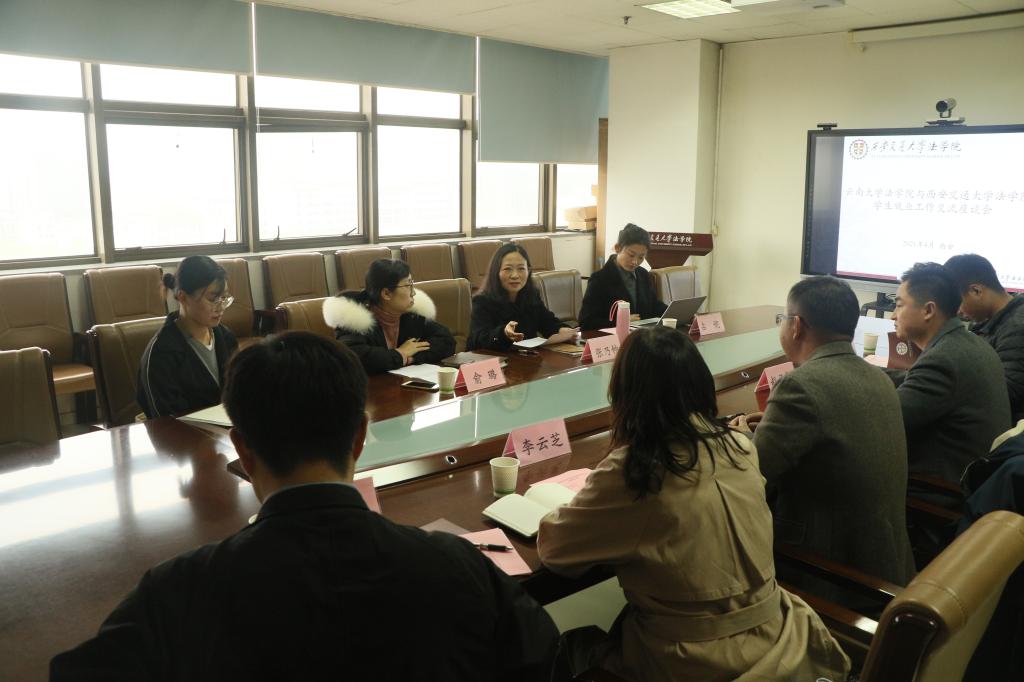 随后,双方针对法学毕业生就业工作普遍存在的重难点问题进行了交流。刘蔓琦书记介绍了云南大学bat365在线唯一官网登录学生就业工作的困难点,他指出生源特点、家庭经济情况、用人单位隐形性别歧视、学生就业观念传统等情况制约了就业工作的开展,导致学生就业率偏低。他对交大bat365在线唯一官网登录的就业工作表示赞扬,指出bat365就业工作呈现系统化、提前化、精细化等特点,许多就业帮扶举措值得学习。张乃钟指出,bat365非常重视学生就业工作,工作中形成了本科生和研究生就业工作“一体化”管理服务机制,在学院领导下以学生工作专职委员为主干,教学副院长、兼职辅导员、研究生导师和科研团队以及本科生班主任、学业导师为补充的就业工作队伍。在就业信息发布、就业经验交流、就业指导帮扶、实习平台搭建、校友资源等方面合理配置,精准发力,努力确保每一名毕业生顺利就业。特别是2020年bat365在线唯一官网登录研究生毕业生在基层选调生,世界五百强企业就业等重要指标超额完成学校目标任务,取得建院13年以来历史最好成绩。学院就业助理丛珊也从毕业生角度对我校选调生考试温馨培训以及学院“管家式”的就业精准指导和帮扶等方面分享了自己的心得和感受。