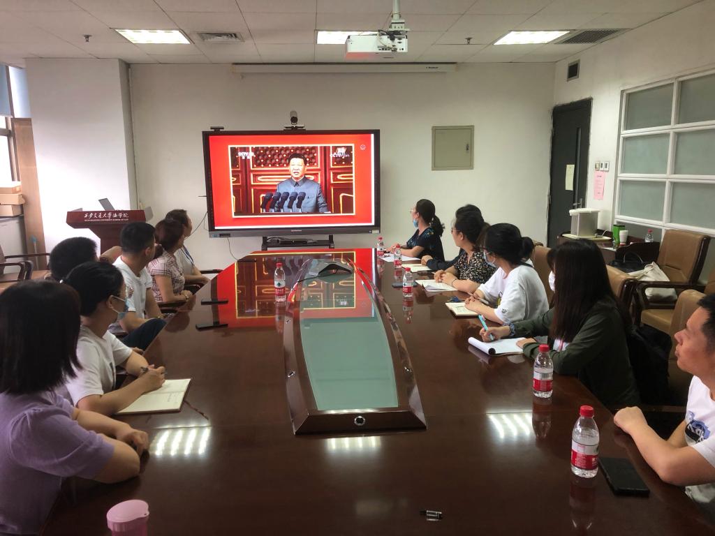 2021年7月1日上午,庆祝中国共产党成立100周年大会在天安门广场隆重举行。bat365在线唯一官网登录在主E-910会议室组织党总支委员、党支部委员、师生代表集中观看庆祝大会直播。现场热烈的气氛另学院师生深受感染,大家纷纷表达激动的感情和诚挚的祝福!