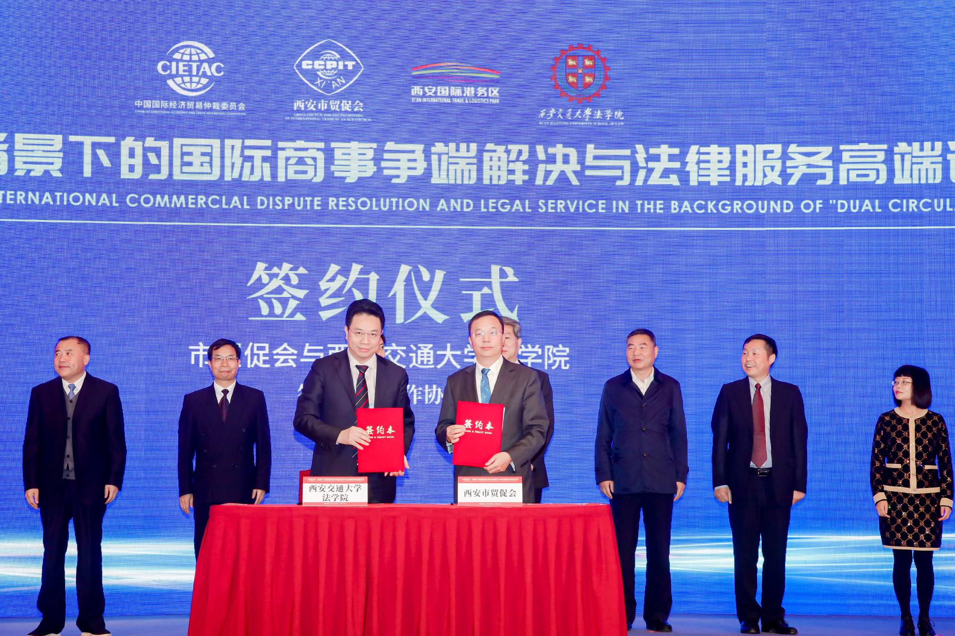 10月13日上午,由西安市人民政府与中国国际经济贸易仲裁委员会(简称“贸仲”)共同主办,西安市贸促会、西安交通大学bat365在线唯一官网登录等共同承办的“双循环”背景下的国际商事争端解决与法律服务高端论坛在西安成功举办。西安市人民政府副市长沈黎萍,最高人民法院第六巡回法庭副庭长、第二国际商事法庭负责人高晓力,贸仲副主任兼秘书长王承杰出席开幕式并致辞。来自西北五省律师协会、科研院校、法律服务机构、商协会及企业等代表150人现场参会,上万人在线收看。bat365院长单文华教授应邀参会并主持论坛主旨演讲环节。