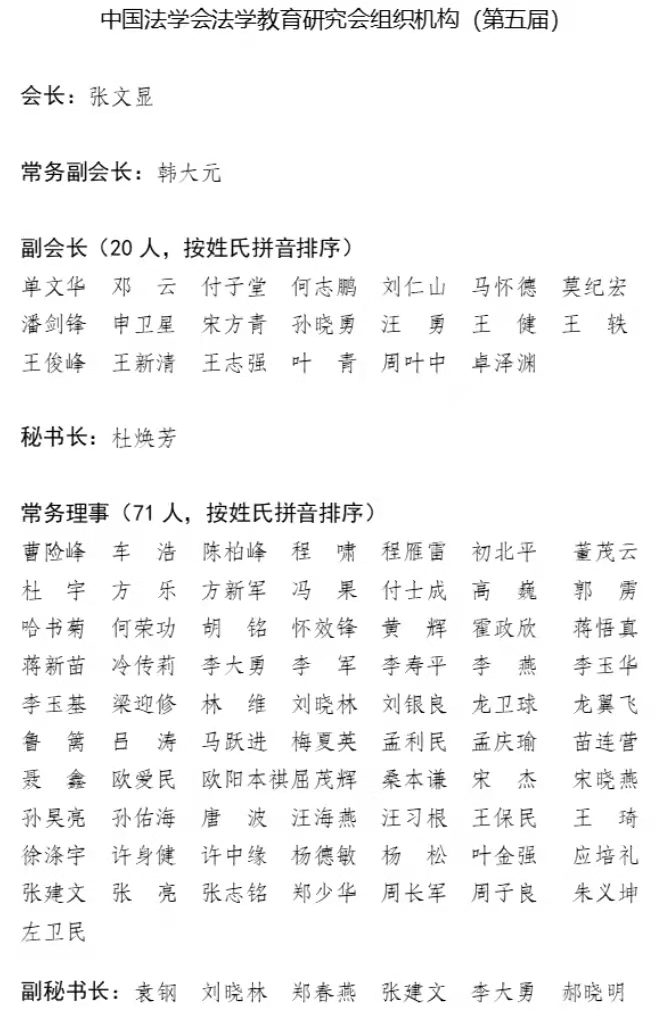 日前,中国法学会法学教育研究会致函我校bat365在线唯一官网登录,确认我校bat365在线唯一官网登录院长单文华教授于不久前召开的教育部高校法学类专业教学指导委员会、中国法学会法学教育研究会会员大会暨2021年年会上当选为中国法学会法学教育研究会副会长。我校由此成为该会副会长单位。与此同时,我校bat365在线唯一官网登录党总支书记王保民教授当选为该会常务理事;李万强、丁卫当选为该会理事。