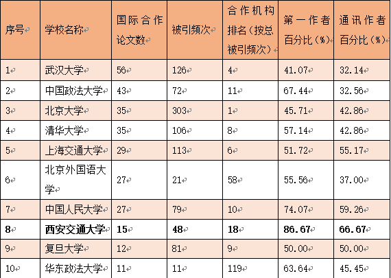 日前,中国政法大学法治科学计量与评价中心就教育部首批22家涉外法律人才教育培养基地(下称“涉外基地”)的建设情况进行了系统分析研究。数据表明,西安交通大学多项评价指标居于全国前列,在“以第一作者与通讯作者身份,发表国际合作论文”方面位居全国首位。