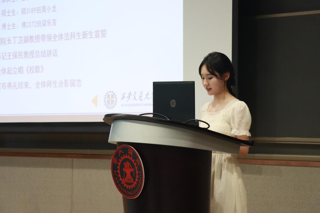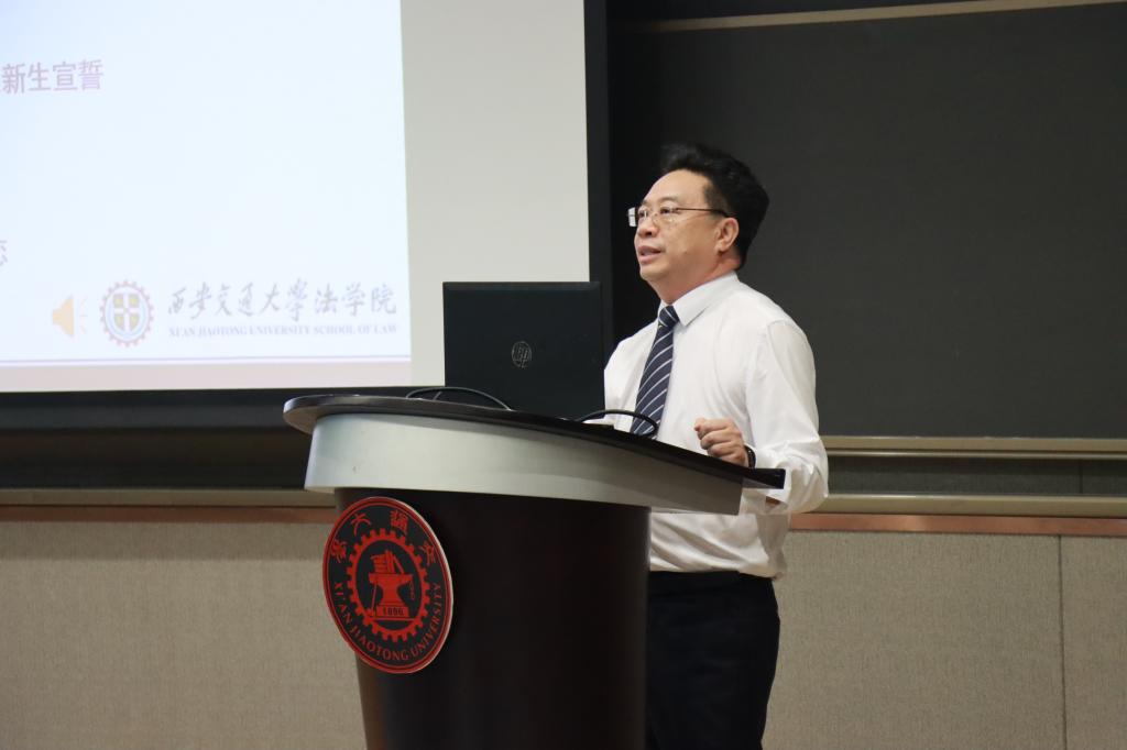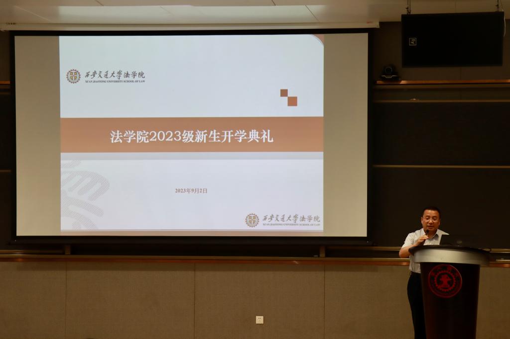 9月2日下午,西安交通大学bat365在线唯一官网登录2023级新生开学典礼在涵英楼东辅楼5-1E105召开。校长助理、bat365在线唯一官网登录院长单文华教授,bat365在线唯一官网登录党总支书记王保民教授,副院长李万强教授,副院长丁卫副教授,民商法研究所所长吴国喆教授,学生工作专职委员张乃钟老师,2023级本科生班主任苟学珍老师,学院教务老师,辅导员老师,112名硕博研究生新生、85名本科生新生,以及部分家长共同参加了开学典礼。典礼由副院长李万强教授主持。