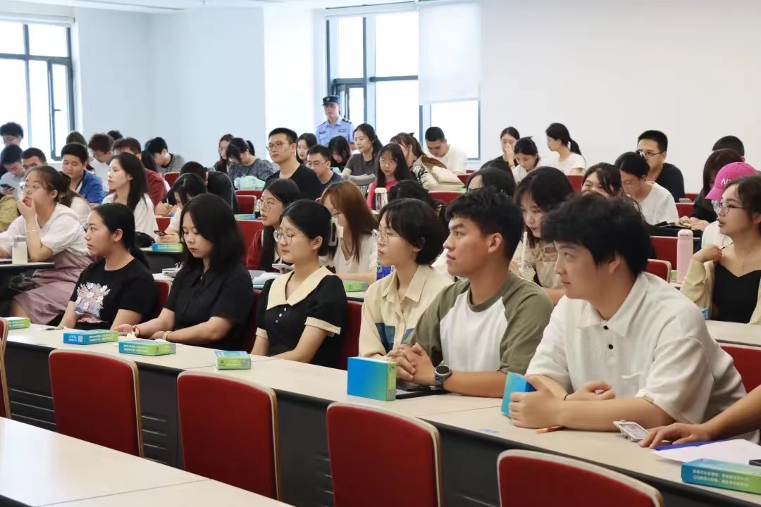会上,保卫处刘豹虎老师应邀首先为同学们进行安全教育讲座,他以“你安全吗?”“你身边的环境安全吗?”和“你身边的人安全吗?”三个问题作为切入口,深入讲解了电动车事故的成因、电信诈骗的手段及防范技巧、火灾预防的方式,并现场展示了防烟面罩、灭火器的使用方法,他提醒同学们要在手机上安装“国家反诈中心”APP并向同学们强调国家安全是国家的基本利益,树立国家安全意识是公民的必修课,倡导并要求同学们要做遵纪守法的好公民。