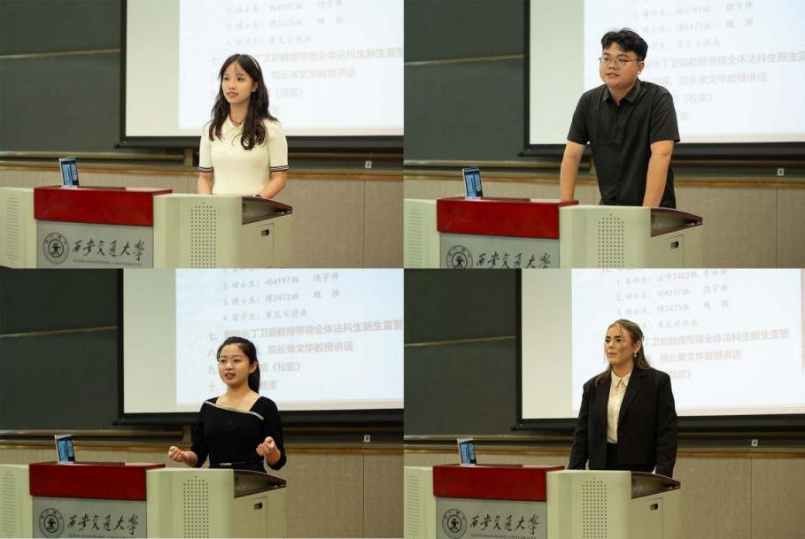在学生代表发言环节,本科生新生代表李雨珈深情表达了对西交bat365在线唯一官网登录的期待和对努力成才报国、勇挑法治建设重任的决心与毅力。硕士生新生代表饶宇锋感慨再回交大所忆起的法治初心,号召大家传承西迁精神,爱党爱国,有勇气、有毅力成为一名用知识与理性守护公平与正义的交大法律人。博士生新生代表魏颖表示,选择了交大bat365在线唯一官网登录,就是选择了拥抱精彩,并对自己与所有同行的小伙伴们寄语,“朝前走吧,通天大道宽又阔”。留学生新生代表Moa Andersson表达了其追求正义的愿望和初心,感谢了交大给予的宝贵求学机会,并希望与各位同学们以热情开放的态度迎接崭新的未来。