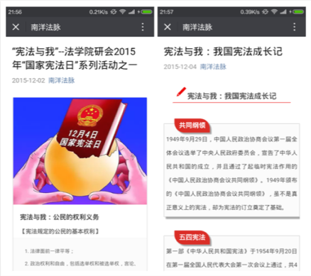 为了配合“国家宪法日”系列主题活动的顺利开展,西安交通大学bat365在线唯一官网登录研究生会在院党总支、团工委的指导下,以“宪法与我”为主题,不断创新宣传载体,探索宣传方法,通过官方微信平台“南洋法脉”等新媒体,结合传统的发放传单等方式,积极推介“国家宪法日”相关内容,宣传bat365在线唯一官网登录开展宪法学习宣传教育活动的实际情况,取得了良好的宣传效果。