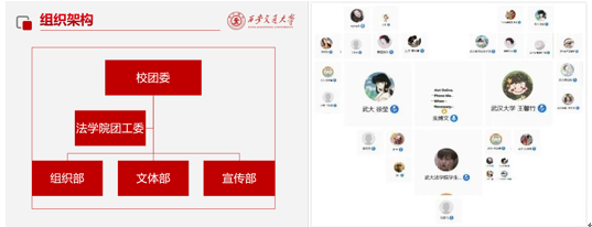 紧接着武汉大学bat365在线唯一官网登录研究生会主席王馨竹也介绍了武大bat365在线唯一官网登录研会的组织架构和职责分工,武大bat365在线唯一官网登录研会始终秉承“自强、求是、弘毅、拓新”的武大精神,为法苑学子提供全方位的服务,调整后的团委及研究生会部门共有10个,包括宣传部、法律实践中心、秘书处、学术编辑部、文艺部、心理部、体育部、权益中心、外联部、就业服务中心。各部门负责人轮流详细介绍了所在部门的日常工作和举办的经典活动,权益中心的权益简报、校领导接待日,秘书处的模拟法庭比赛,外联部的线上自习室、学术编辑部的征文比赛等活动都引起了交大同学们的浓厚兴趣,双方就举办活动中的宣传方案、经费来源、激励机制、时间安排以及学业压力等细节问题进行了深入的探讨。