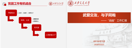 刘云梦表示,十分感谢交大bat365在线唯一官网登录研究生会主动邀请我们开展经验交流,武汉大学与西安交大均作为新时代国家重点建设双一流高校,肩负着民族复兴的中国梦,未来亦将携手共进,“到中流击水”。孙阳表示,交通大学和武汉大学都是在国家危难之际,为民族自强而生,历经两甲子风雨洗礼,始终不忘初心、勇担使命。新冠病毒肺炎袭来,两校医务工作者秉承医者仁心,武大医学部白衣执甲、坚守阵地,交大医学部与子同袍、逆行出征,为打赢这场疫情防控阻击战作出了不可磨灭的贡献。他在此代表交大bat365在线唯一官网登录广大党员向英雄的武汉人民致敬,希望武大同学们保重身体,等疫情散去、山河无恙之时,大家有机会可以实地交流,轻抚兴庆湖畔的秦砖汉瓦,品味珞珈山上的荆风楚韵。