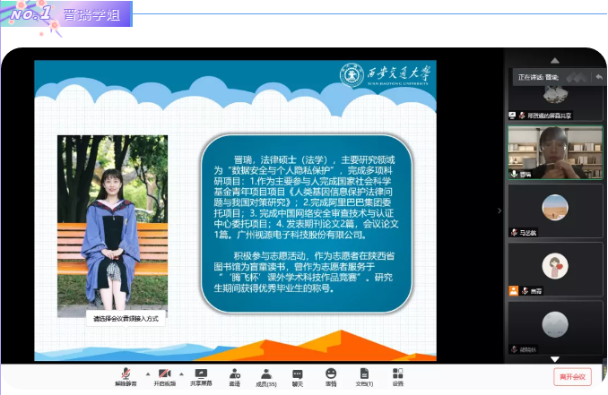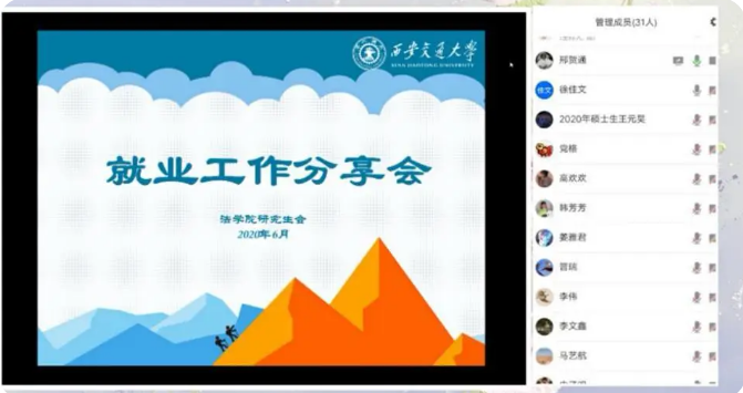 2020年6月20日晚,bat365在线唯一官网登录举办了就业工作分享会,邀请了bat365在线唯一官网登录晋瑞、徐佳文和熊晓林三位成功签约心仪就业单位的毕业生在线分享就业经验,为与会的40余名研究生悉心提供就业、实习建议,耐心答疑解惑。在抗击疫情常态化背景下,这些就业经验分享能够帮助学生提早知悉就业流程,统筹就业时间安排,把握就业过程加分项,顺应经济发展态势,规划未来职业方向。本次分享会由bat365在线唯一官网登录研究生会邢贺通主持。