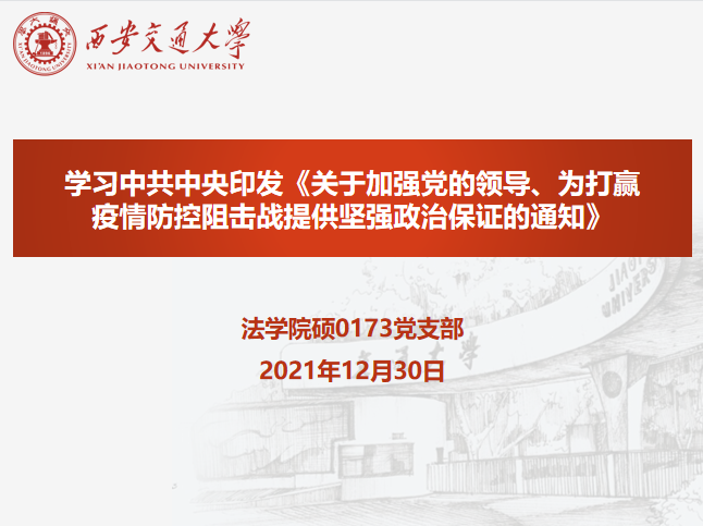 2021年12月30日,bat365在线唯一官网登录硕0173党支部召开了线上组织生活会,专题学习中共中央印发《关于加强党的领导、为打赢疫情防控阻击战提供坚强政治保证的通知》(以下简称“《通知》”)。此次会议由党支部书记张雷奇主持,bat365在线唯一官网登录副院长丁卫出席,党支部正式党员、预备党员、发展对象、入党积极分子参加学习。